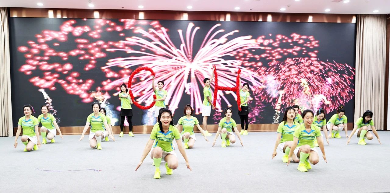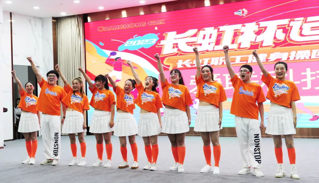 長虹技術中心三樓會議廳,動感的音樂、青春的律動……健身操比賽現場氣氛濃厚而熱烈,由各分工會精心排練、選送的15支參賽隊伍先后登臺進行表演。今天她們化身成一個個“健身操達人”,傳遞健康、向上的生活方式,倡導“全民運動”的健康理念。在活力音樂的律動下,參賽職工踏著激昂動感的音樂節拍,用精巧的動作、自信的笑容,舉手投足間散發出的陽光自信,展現長虹人銳意進取、昂揚向上、奮發有為的精神風貌,演繹出擔當新作為的決心與魄力,帶領現場觀眾奔赴了一場活力四射的健身操視覺盛宴。