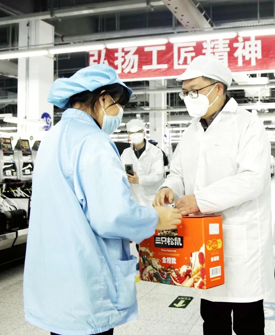 在精密公司智能制造產(chǎn)業(yè)園工段車間和網(wǎng)絡(luò)科技公司生產(chǎn)廠,鄔江向奮戰(zhàn)在前段產(chǎn)線與整機(jī)產(chǎn)線的職工表達(dá)了工會(huì)“娘家人”的新春祝福與溫暖關(guān)懷,并仔細(xì)詢問了職工的實(shí)際需求,強(qiáng)調(diào)各級(jí)分工會(huì)要牢固樹立服務(wù)職工的意識(shí)和行動(dòng),同時(shí)向長(zhǎng)期服務(wù)一線職工的分工會(huì)主席致以節(jié)日的祝福。