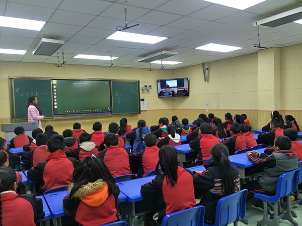 甘孜州鄉(xiāng)城學(xué)校使用長(zhǎng)虹教育公司遠(yuǎn)程智慧系統(tǒng)與嘉祥外國(guó)語學(xué)校學(xué)生們遠(yuǎn)程同步上課